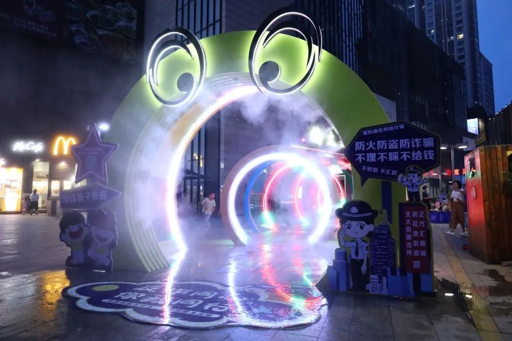 江苏省常州市公安局钟楼分局在北大街正方汇京城商业街建成“时光沉浸式反诈主题长廊”,探索推行“治安众筹、警民共建、平安联创”群防群治机制,为构建全面反诈大格局注入新动力、激发新动能。
