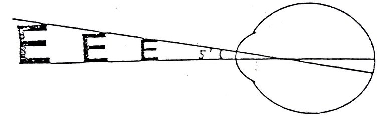 而且,不同大小的“E”,在不同的距离与第一结点都呈5分视角。其中每个“E”的每一个小段,也都为1分视角。