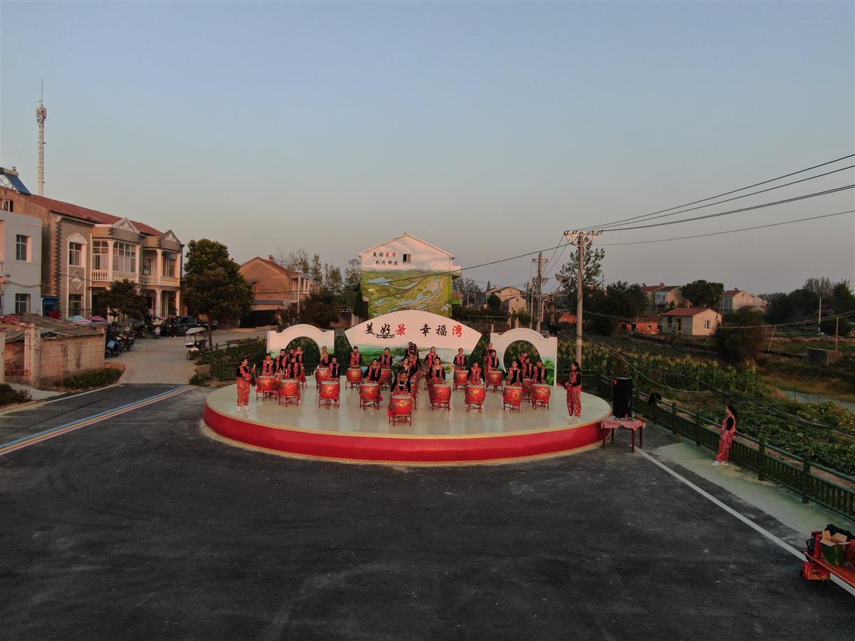 每到夜幕降临,鼓声响起,锣鼓和鼓型舞台相映成趣,这里渐渐成了社区的“网红地”。