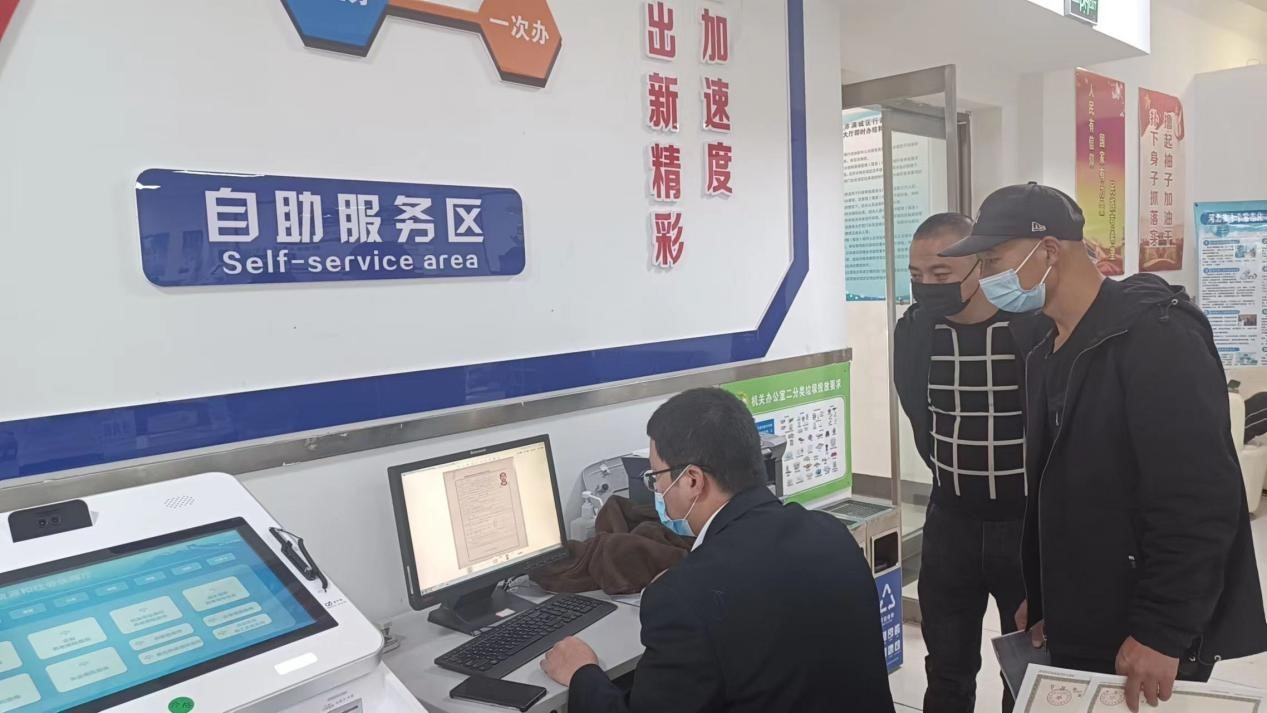 8:35,王女士一走进保定市满城区政务服务中心,前台帮办人员立即走上前主动询问了解王女士需求,两名帮办人员分头行动为王女士提供帮代办服务,十几分钟的时间,就迅速办完了相关业务。