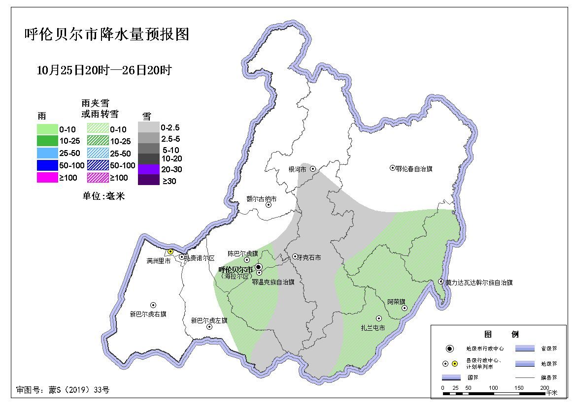 今天夜间到明天白天:牧区东部偏东和林区南部有小雪,牧区东部、林区东南部和农区大部有雨夹雪,其余地区晴间多云。主要的降水过程会集中在今天夜间,上述地区,在降雪时段伴有4-5级的西北风,水平能见度明显下滑。除此之外,全市大部地区的最高气温普遍下降4-6度,全市大部的最高气温仅在5℃上下,体感寒凉,不舒适。火险方面:未来24小时,全市的森林草原火险气象等级为难燃级或不燃级。明天夜间到后天白天:随着天气转晴,最低气温将出现大幅下滑,像是根河市大部和图里河镇下降到零下15度左右。其余地区也降至接近零下10度。27日夜间到28日白天:全市晴天为主,各地偏南风2-3级转3-4级,气温小幅回升。