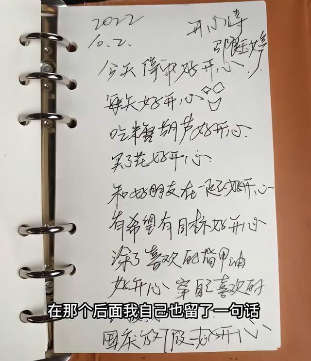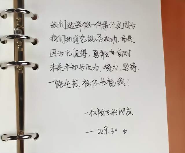 男子介绍:里面有很多陌生人写的非常正能量的话,自己也在上面写了一句话,感觉大家把对生活积极阳光的态度写在本子上,是一件很浪漫的事情!