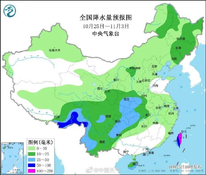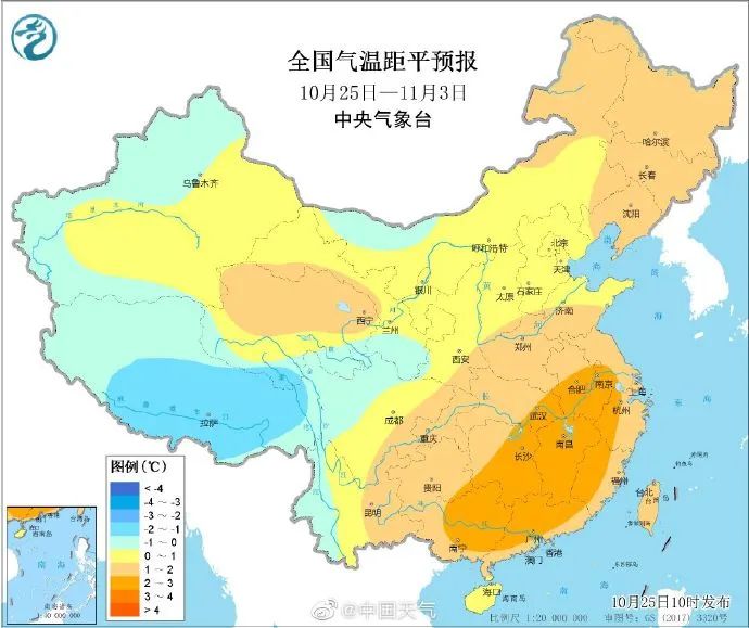 受降水影响,25日日平均气温陕北东部、关中东部、陕南大部下降2~4℃,局地达4℃以上。