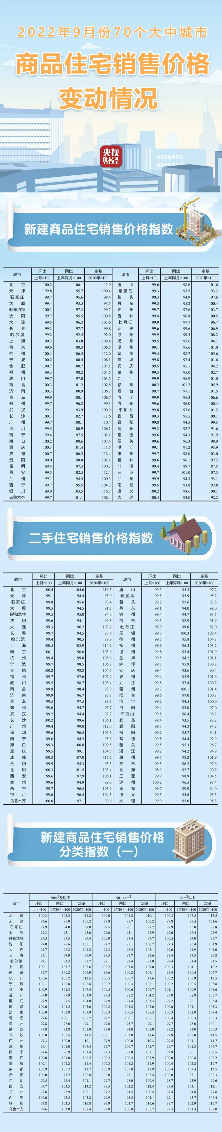 10月24日,国家统计局发布数据显示,2022年9月份,70个大中城市中商品住宅销售价格下降城市个数增加,各线城市商品住宅销售价格环比下降或持平,一线城市新建商品住宅和二手住宅销售价格同比涨幅一落一升、二三线城市降幅扩大。