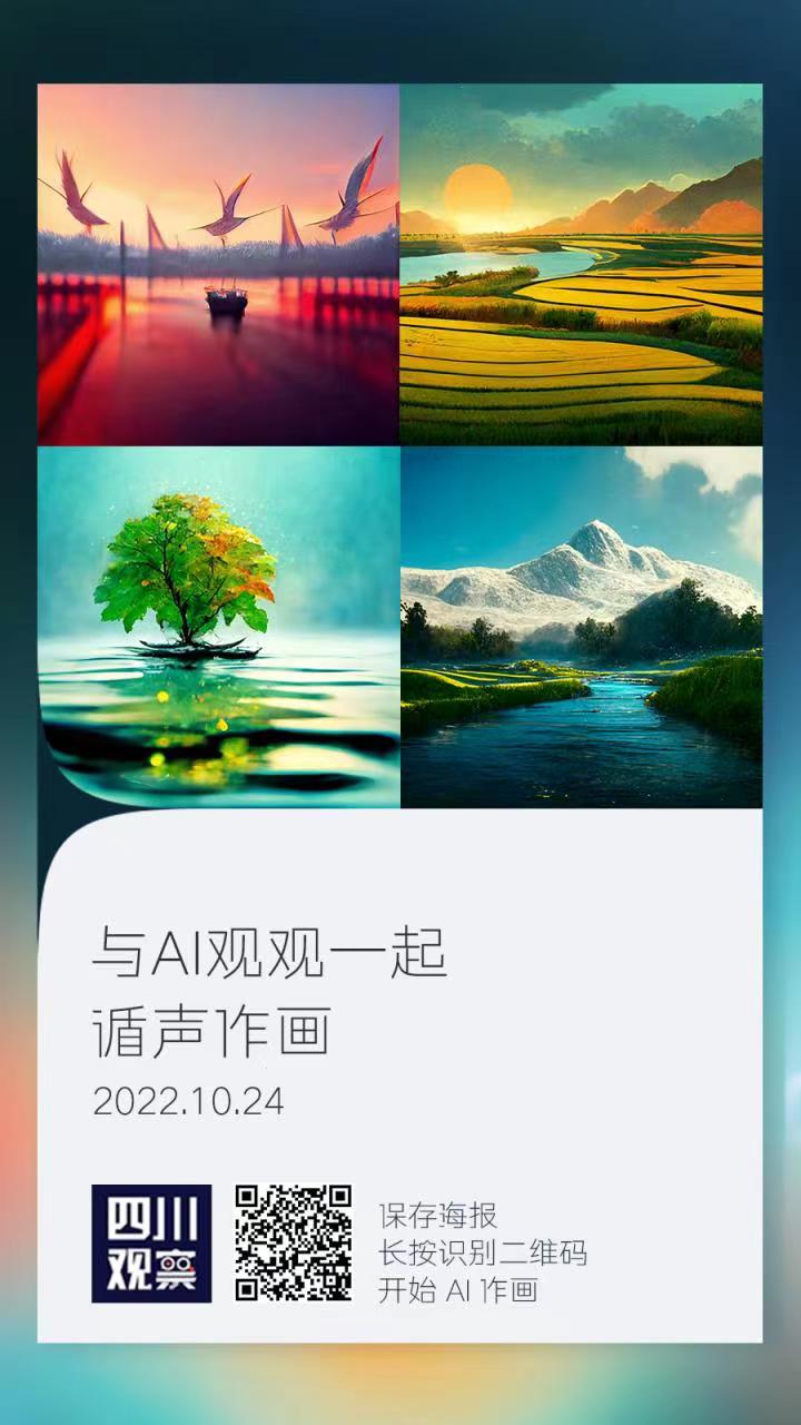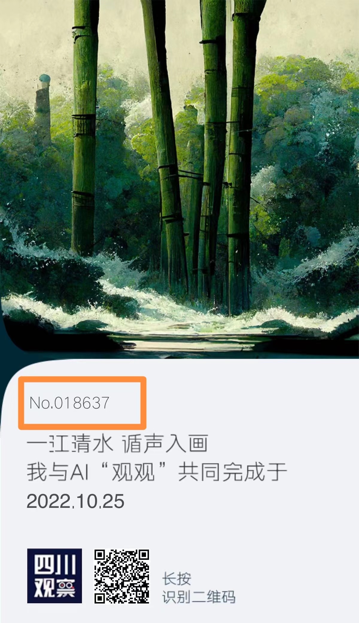 如果你是幸运儿,请把带有编号的海报及姓名、电话、收件地址等信息发到邮箱:sichuanguancha@163.com,邮件标题:观观AI作画幸运网友,活动截止时间为:10月31日。也欢迎大家继续支持“AI观观”,我们后续还会有礼品派送哦。