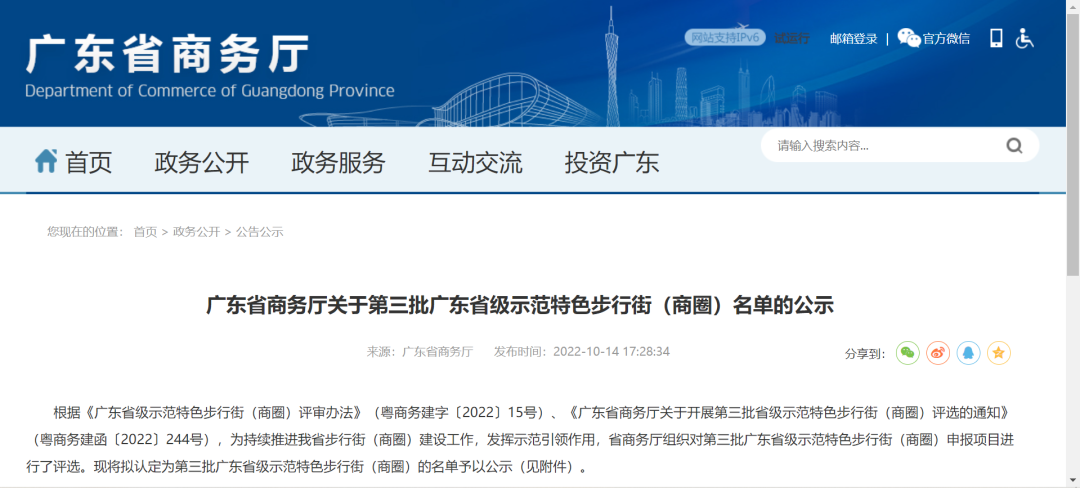为推进全省步行街(商圈)建设工作,省商务厅近期组织了第三批广东省级示范特色步行街(商圈)申报、评选活动。