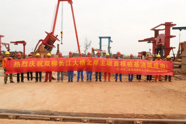 双柳长江大桥北岸主墩首根桩基完成浇筑。通讯员供图
