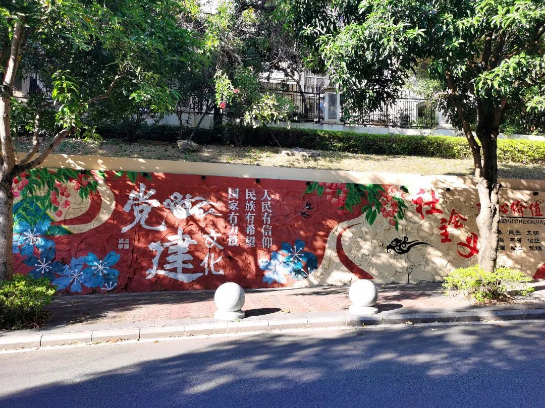 荔城街金竹社区在推进创建文明城市建设中,通过生动直观的墙绘,将社会主义核心价值观、“中国梦”、丝路精神、抗疫精神、党建文化等党建元素形象地展现在小区居民日常生活的视线中,发挥了党建核心引领作用,成为展现文明新风尚的靓丽风景线。