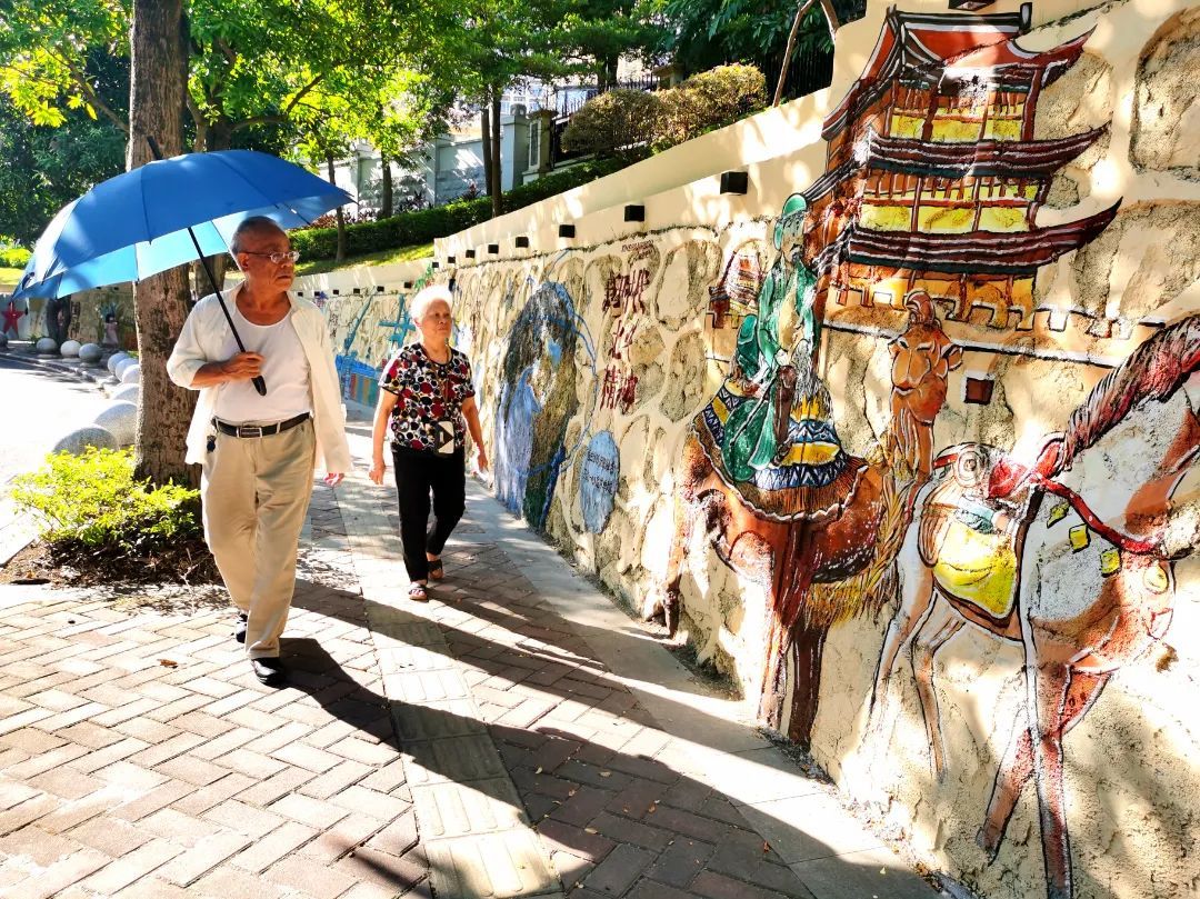 一名路过的奶奶表示,这面旧墙体经过十多天的改造,又黑又旧的老围墙换上了“新衣”,整体带动新涌花园实现了华丽变身,为居民营造出干净、整洁、明亮的居住环境。“看到这些图案很亲切,让人忍不住会停下脚来欣赏。”居民赵涛表示,日常生活经常经过这里,看到这面墙一天天变美,经过的心情也会变好。