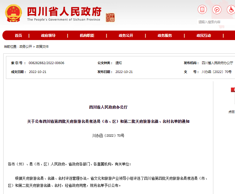 近日,四川省人民政府办公厅公布了四川省第四批天府旅游名县候选县(市、区)和第二批天府旅游名镇、名村名单。其中,金堂县五凤镇入选第二批天府旅游名镇。