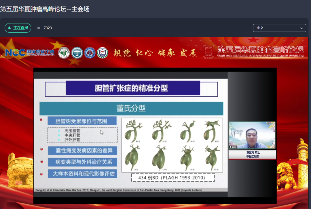 院士论坛环节,中国工程院院士、清华大学附属北京清华长庚医院董家鸿院士以“D型胆管扩张症精准外科治疗”为主题,进行主题演讲。董家鸿院士指出肝内病变胆管切除是D2型BD治愈性手术的关键,肝内病变胆管切除的途径主要有大范围肝切除、选择性肝段切除、经肝裂途径肝实质劈离病变胆管切除。根据病变胆管累及的范围、剩余肝脏功能体积等选择D2型BD的切除途径和方法。