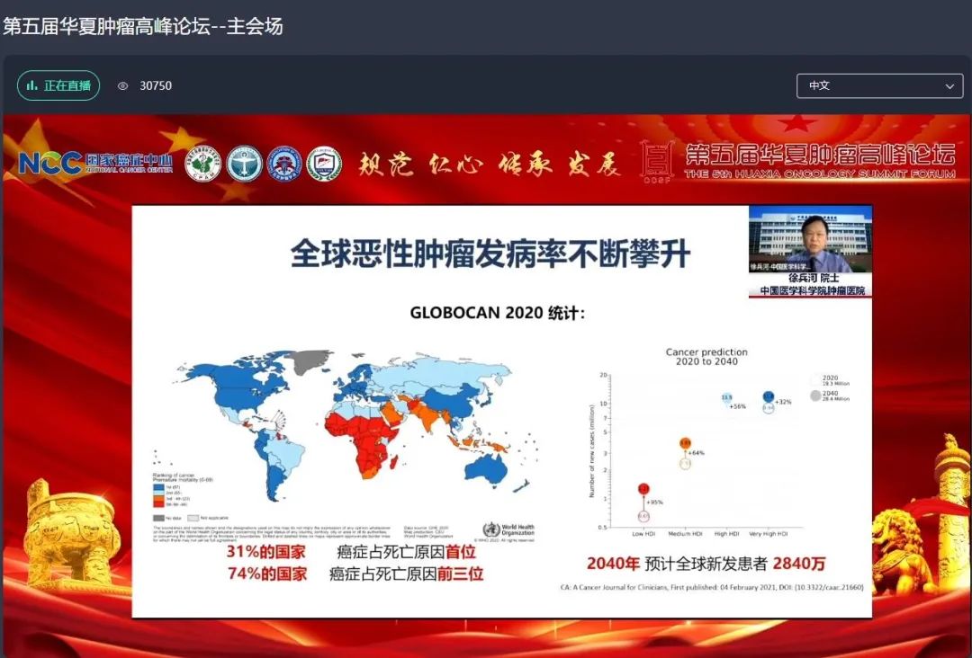 因疫情防控的需要,本次大会以线上会议的形式召开,数百位肿瘤领域的专家学者与会分享,大会开幕式暨主论坛线上直播最高观看人次达43291。华夏肿瘤高峰论坛持续秉承 “规范、仁心、传承、发展” 的宗旨,坚持"人民至上、生命至上"的价值理念,践行2030“健康中国”发展规划,努力探索创新,推动我国肿瘤学科的发展进步,向全国乃至世界同道们传递了我国在肿瘤防治领域的最新成果、前沿理念和创新技术。