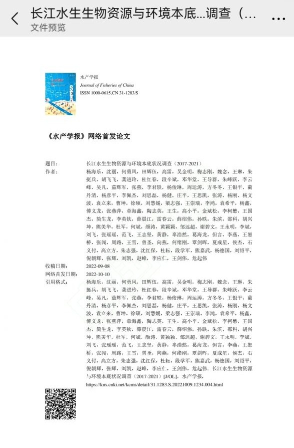 长江日报大武汉客户端10月25日讯(记者金文兵)长江中,现在还有多少鱼?日前,《水产学报》刊发了一篇论文《长江水生生物资源与环境本底状况调查(2017—2021)》,为我们“更新”了长江鱼类资源的最新数据。