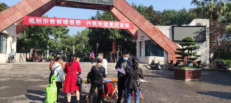 为进一步增强广大人民群众识别宗教极端思想的能力,做到全社会共同抵制宗教极端思想的浓厚氛围。10月24日下午,高县县委统战部(县民宗局)牵头,会同政法委和庆符镇统战委员到庆符镇硕勋社区,开展“抵制宗教极端思想 共筑和谐美好家园”反宗教极端思想宣传教育活动。