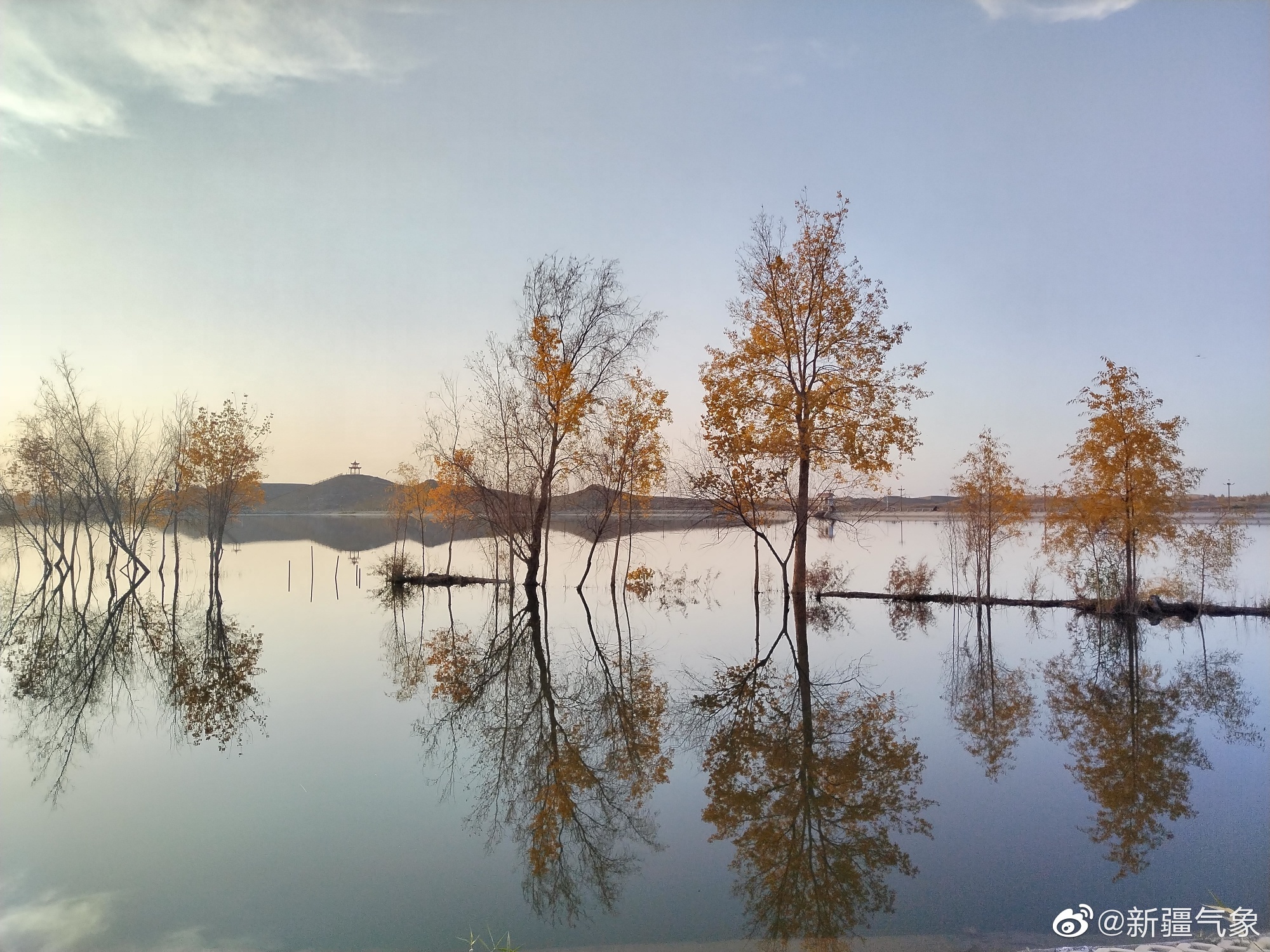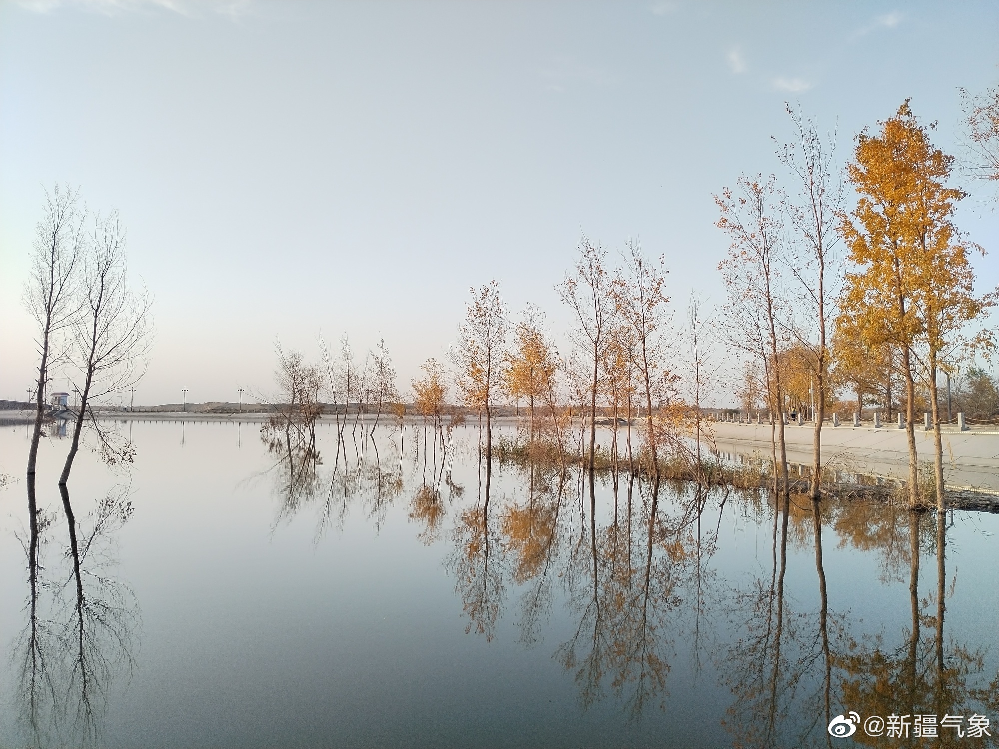 胡杨在蔚蓝的天空映衬下,更加魅力耀眼。水中泛起了层层涟漪,胡杨林的倒影若隐若现,如果没有风金色的胡杨林与那静静的湖水相互辉映,不知道要迷醉多少人。坐标:新疆民丰县 (图/文:胡尔西代)