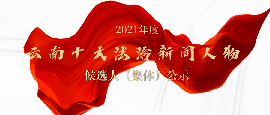 学时代楷模,树时代正气,展时代风采。经单位推荐、事迹刊登、初评委员会评审,由云南日报报业集团主办,云南法制报、省委政法委云南政法融媒体中心共同承办的“2021年度云南十大法治新闻人物”评选活动共评选出24名候选人(集体)。