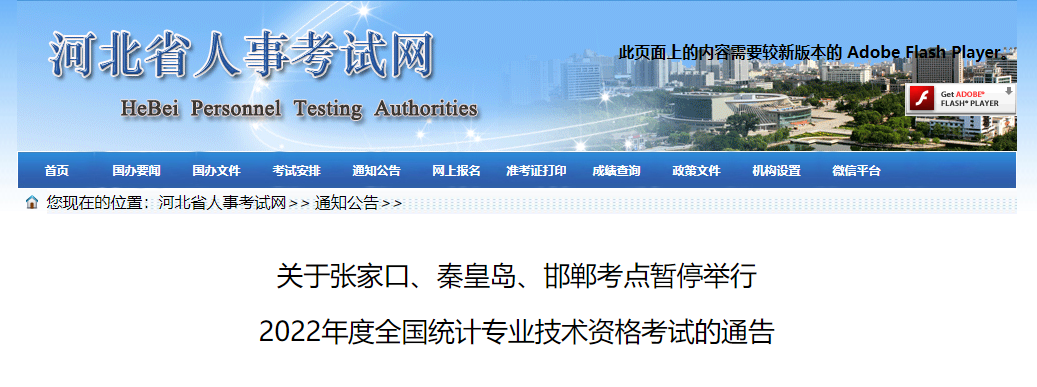 关于张家口、秦皇岛、邯郸考点暂停举行2022年度全国统计专业技术资格考试的通告