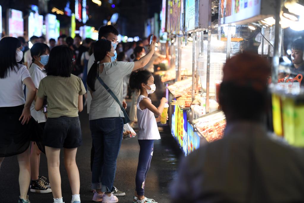 在广西南宁市中山路美食街,市民购买美食。新华社记者陆波岸 摄
