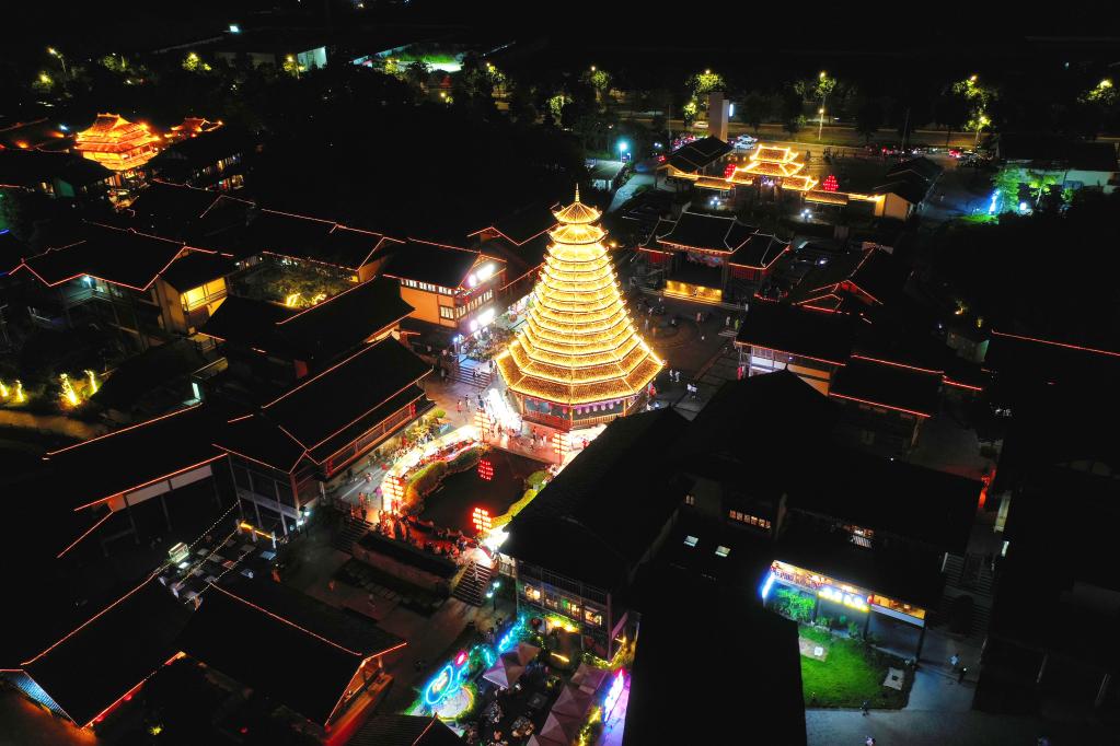广西南宁相思小镇夜景(无人机照片)。新华社发(喻湘泉 摄)