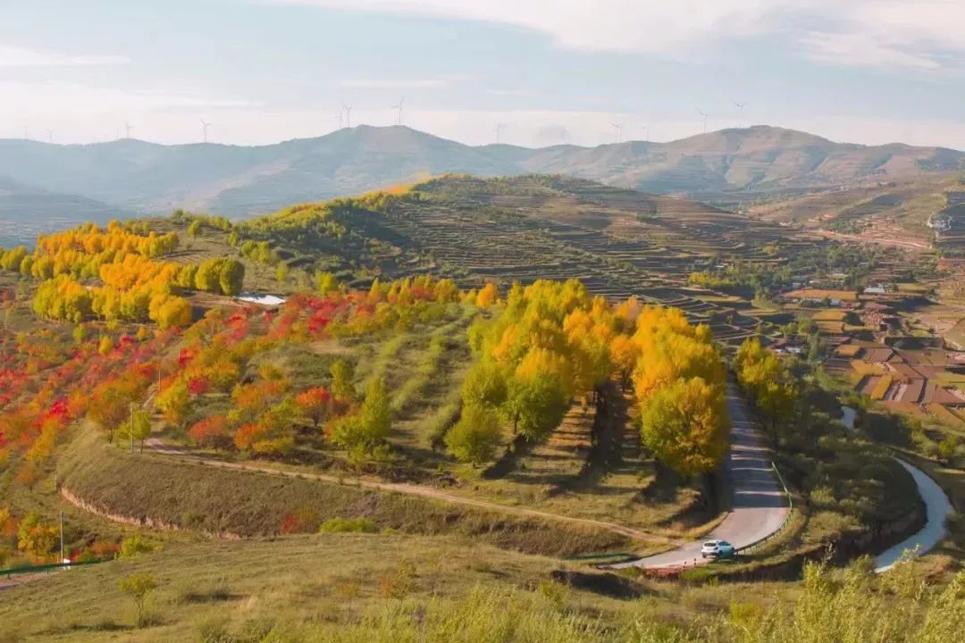 深秋时节,陇西县福星梁上层林尽染,色彩斑斓,好像一幅精美绝伦的秋日油画。公路旁、山坡上,片片秋叶随风飘零,洒落满地,吸引了众多市民前来打卡游玩。