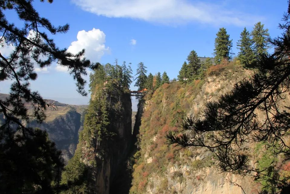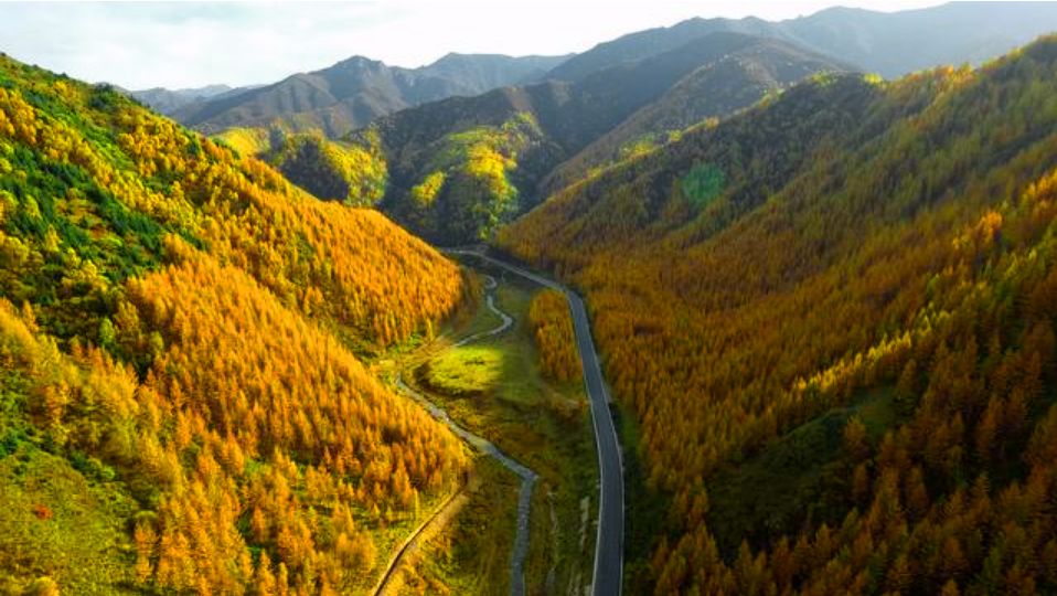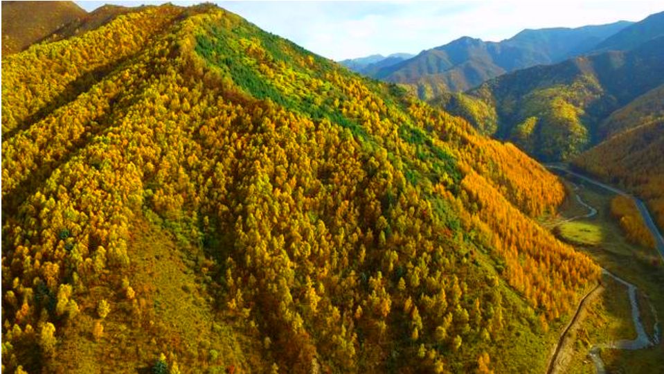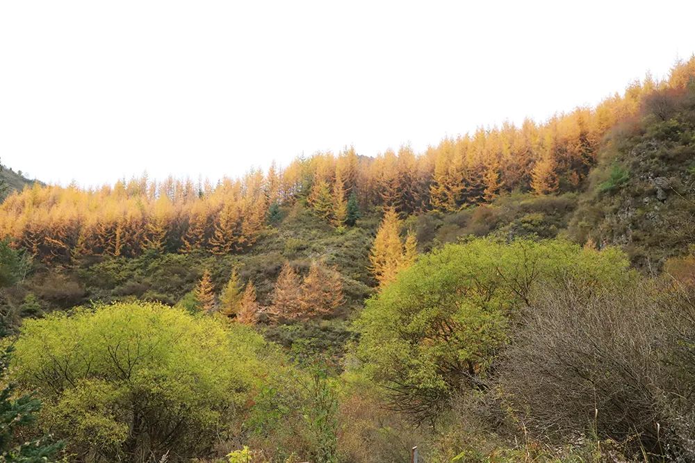 空山幽谷,古树郁葱,一年又一年风花雪月。一到深秋,遮阳山构成了一幅幅如诗如画的奇丽景观。山峰之上的落叶松满身金黄,千仞峭壁上的水痕如高人墨迹,五彩与水墨形成鲜明对照,令人陶醉。