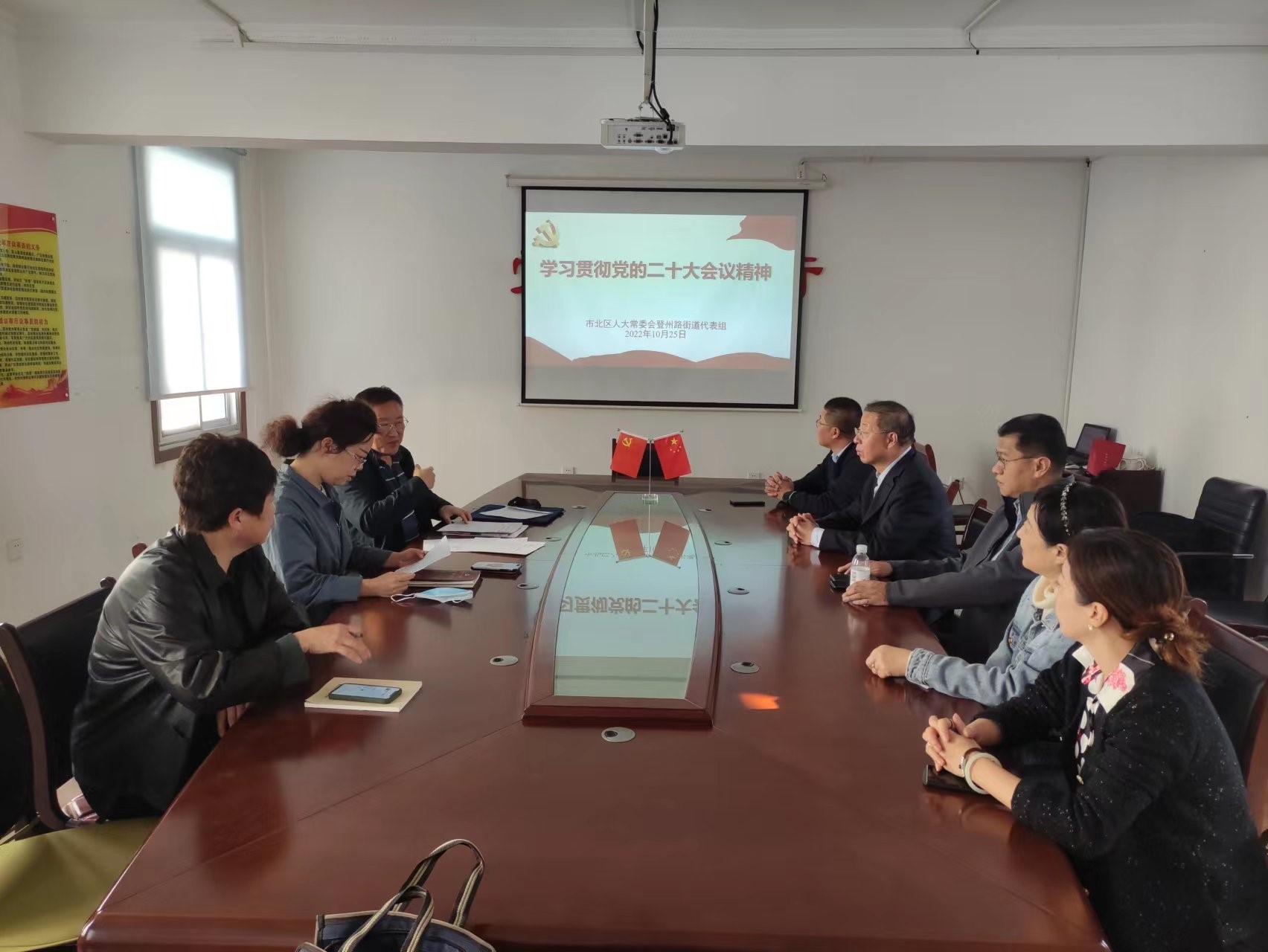 调研开始前,市北区人大代表登州路街道代表组召集召开专题学习会议,区人大人事代表工委主任徐瑞群传达了区人大常委会对街道人大代表联络站点打造、代表培训、代表建议等工作的要求,街道人大工委主任朱建奎传达学习了党的二十大会议及二十届一中全会会议精神,并对区人大“为民办实事”实践活动落实情况进行了通报。朱建奎强调,各位代表要积极作为,常态化进站开展选民接待活动,持续开展好“为民办实事”实践活动和志愿服务活动,及时学习掌握“数字化”平台使用方法、及时完善“代表履职通”履职档案,多维度开展代表调研,提出高质量代表建议;街道人大工委将为代表履职搭建好平台,深入开展“七比七评”活动,切实评出表率、评出干劲、评出亮点。