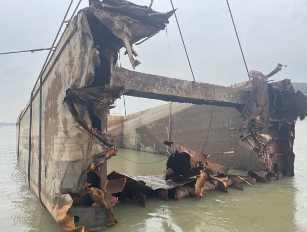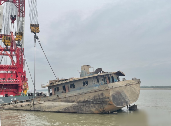 长江日报大武汉客户端10月26日讯 10月25日,由长江航道局负责实施的历史碍航沉船“二航9566”打捞作业在中游牧鹅洲水道顺利完成。随着残骸起吊出水,该沉船对当地生态环境和通航安全的不利影响彻底消除。这也是该局在长江干线航道实施的首次应急抢险打捞。