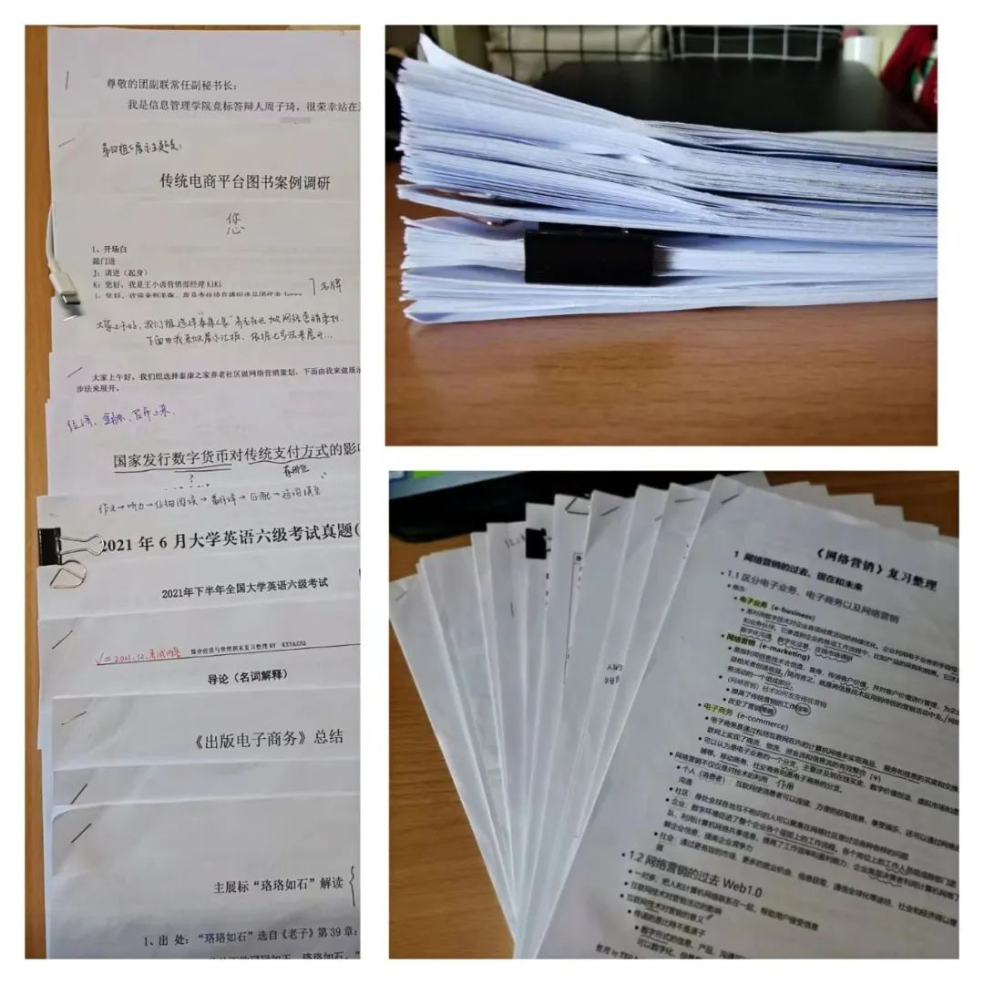 出版虽然是文科专业,但是课程也并不轻松。周子琦还记得在大一下学期上网课时,涉及编程和计算机,学的很吃力,成绩也并不理想。但是正是在那之后,她提高对专业课的重视程度。“学期中的无数个课堂展示、学期末一本本厚厚的复习资料,都需要付出很多心血”,周子琦说。但正是在这个过程中,她学到了很多技能,慢慢突破自己的上限。