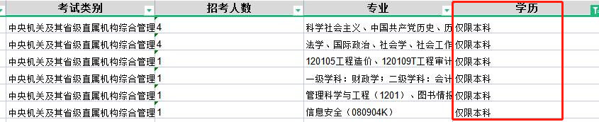 更为重要的是,每年国考都还有部分岗位“仅限本科”报考。