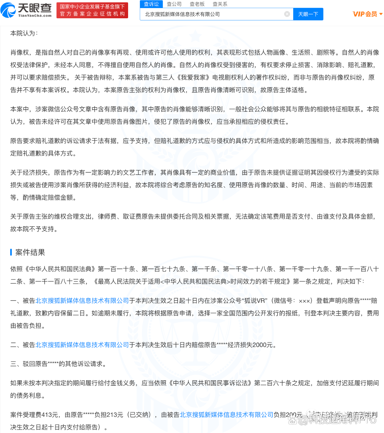 科技边角料获悉葛优与北京搜狐新媒体信息技术有限公司相关网络侵权责任纠纷一审判决结果日前公开,北京互联网法院判令搜狐公司在涉案公众号“狐说VR”登载道歉声明,致歉内容保留2日,赔偿葛优经济损失2000元。