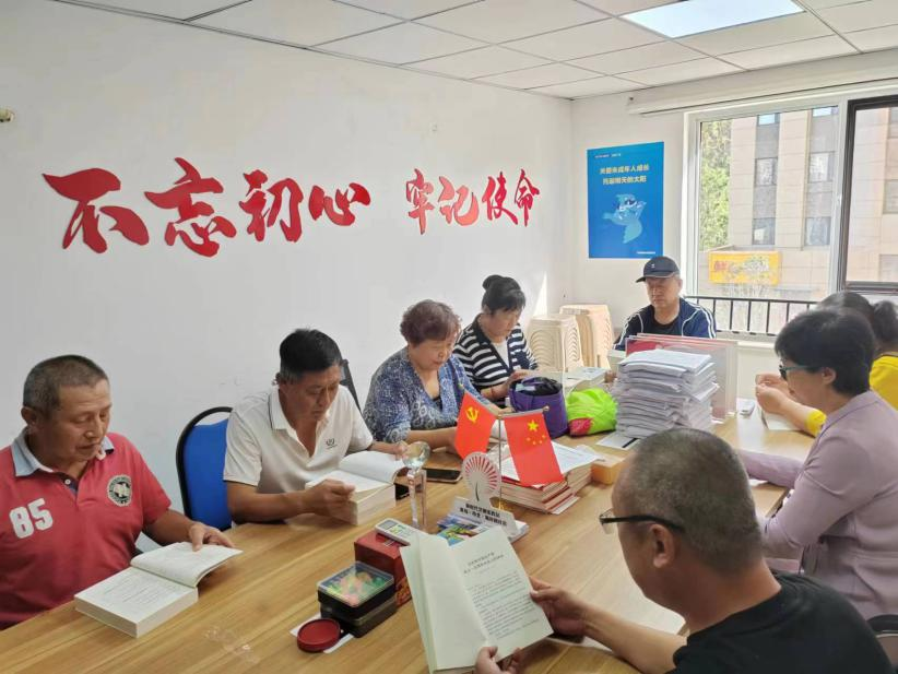 在图书阅览室总能看到热爱读书人的身影。近日,市北区兴隆路街道海岸路社区在阅读室组织党员和居民开展全民阅读活动,重温党史、共读经典。