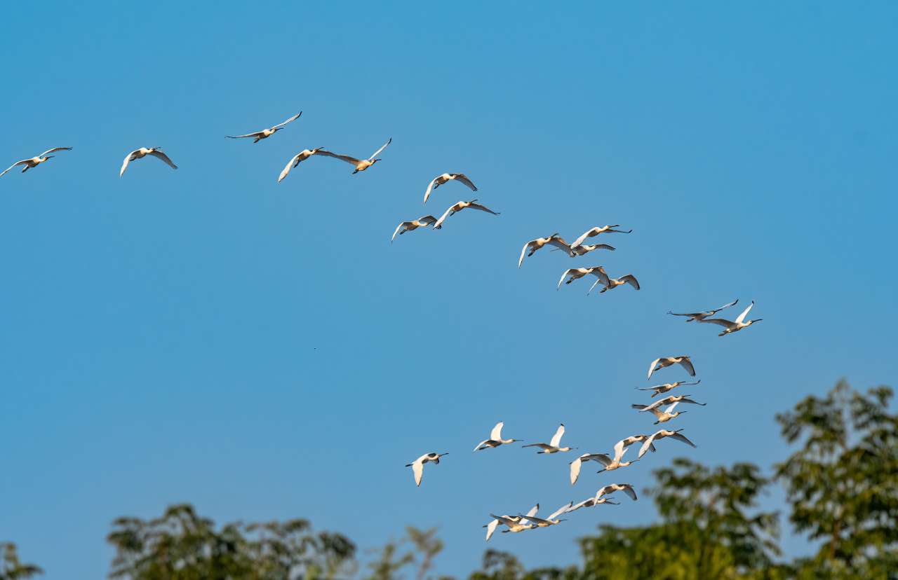 “这36只白琵鹭应该是迁徙途中路过始兴,在此停留歇息、觅食。”张强说,始兴属于南岭山脉,每年的9月和10月会有大量的迁徙鸟陆陆续续从我国的北方或者是远东地区迁徙过来并经过这里,加之始兴这里的森林生态系统完整,各种山塘河流等滩涂地方较多,相当于这里有很多能量补充站,能给迁徙的候鸟提供多样的食物及其他能量补给。