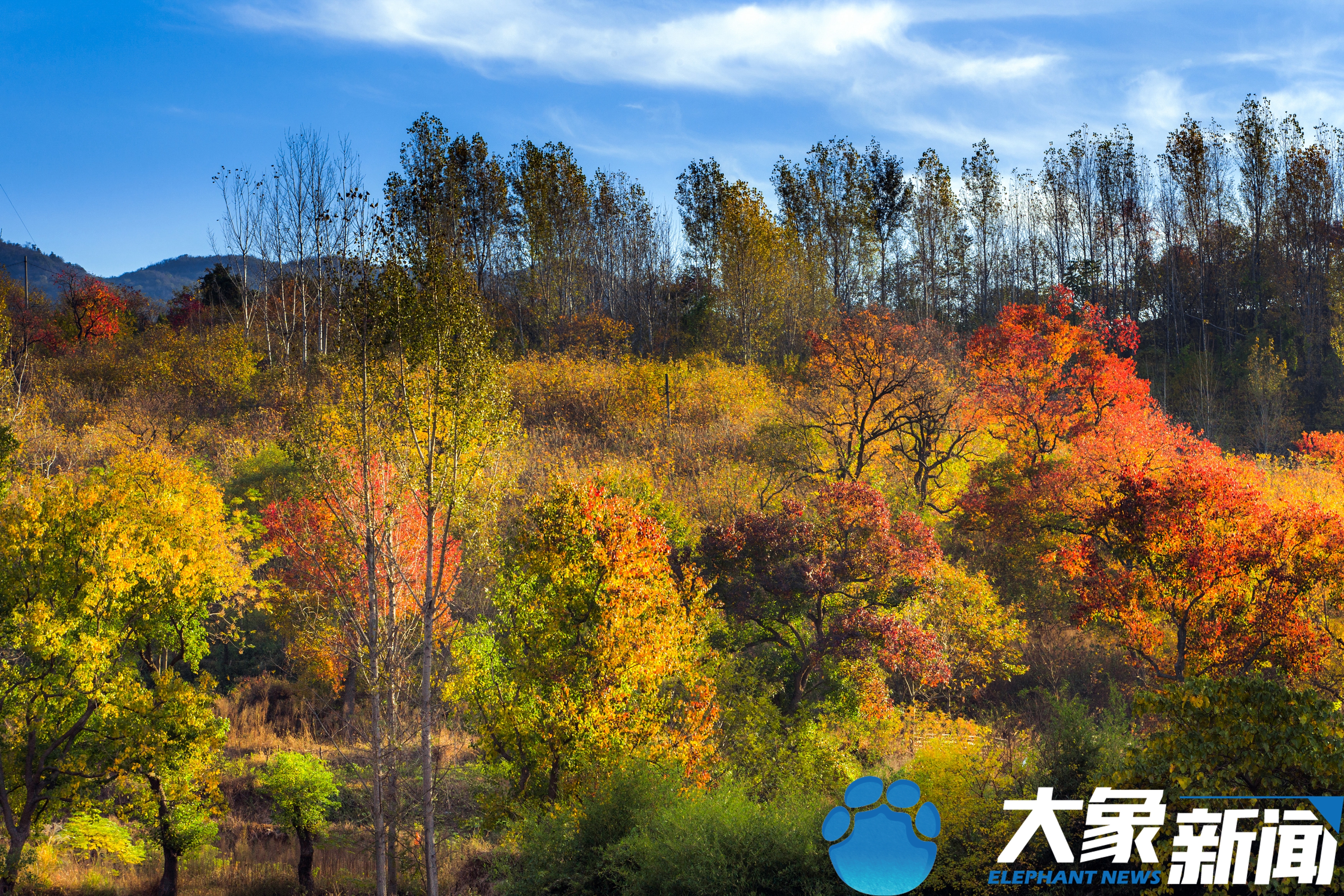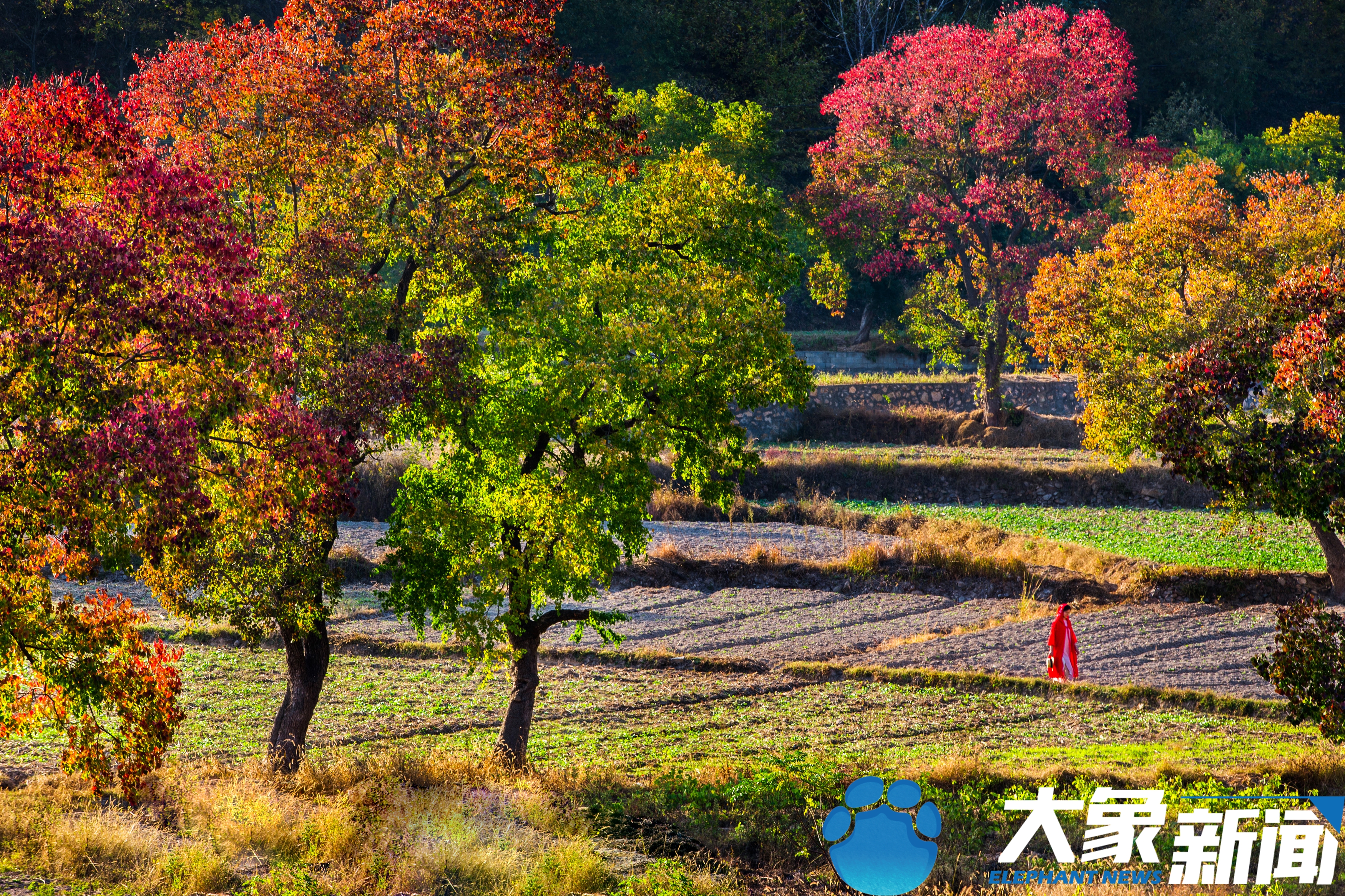 秋,在这里幻化出明丽的色彩,宛如一幅五色斑斓的靓丽画作,美得让人惊叹。
