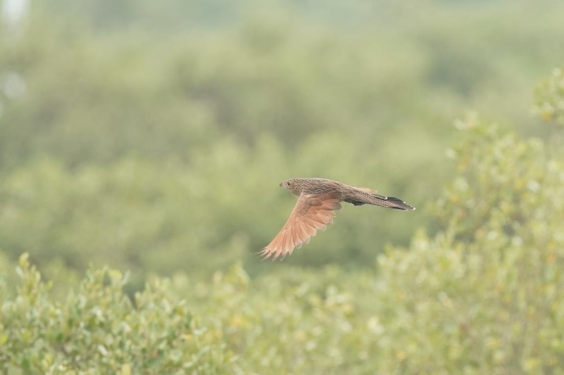 在红树林间飞翔的小鸦鹃。梁元泉 摄