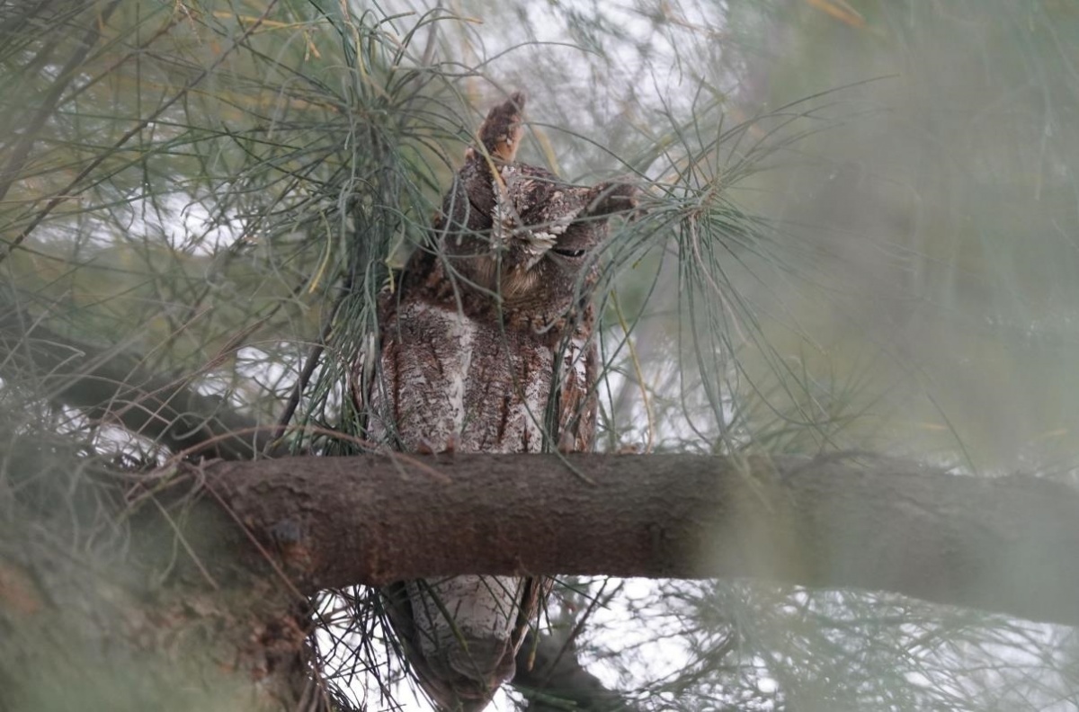 在木麻黄树上栖息的红角鸮。梁元泉 摄
