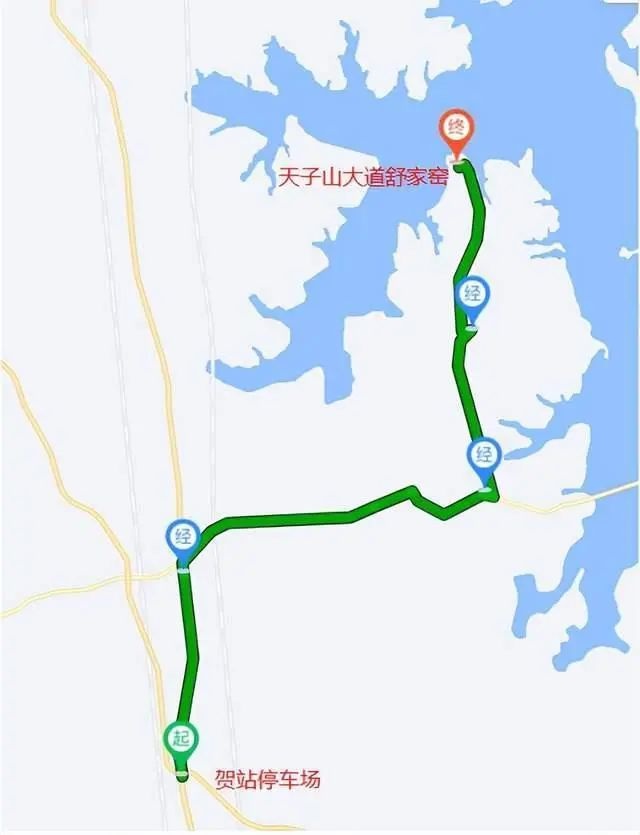停靠站点:贺站停车场站、纸贺路建国村、纸贺路冯家边湾、纸贺路红星村、纸贺路龙堪卢湾、纸贺路城铁山坡东站、山舒路新农村、山舒路光星村、山舒路罗家畈、山舒路和尚桥村、山舒路湖岭村、山舒路周李湾、山舒路新生村、山舒路保福街、山舒路王莲庄、山舒路高峰村、山舒路五里山村、天子山大道山舒路、天子山大道后湖董、保福祠街、天子山爱国主义教育基地、天子山大道山下屋、天子山大道远景村、天子山大道舒家窑。(沿途设置站点24个)