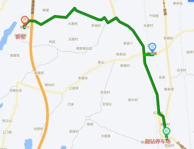 停靠站点:贺站停车场站、武咸公路张王家、武咸公路红旗村、武咸公路群力村、武咸公路星明街南、武咸公路星明村、武咸公路彭家咀、武咸公路山新路、幸福村、夏礼记、周李家、五星村、公路桥、六合站、苏公岭、上马场、新窑。