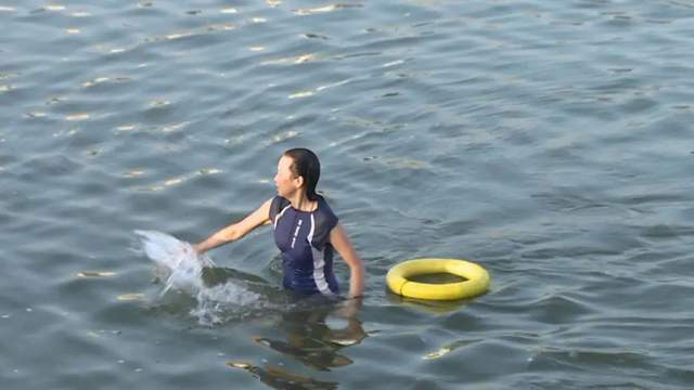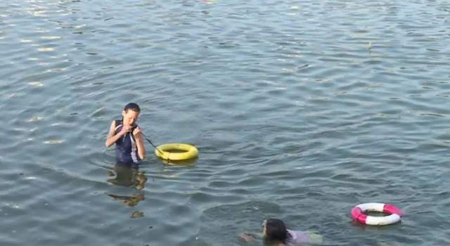 这两位阿姨,你们以为带上游泳圈下水游泳,就能保证安全吗?为了自身安全请到正规的游泳池游泳。