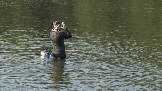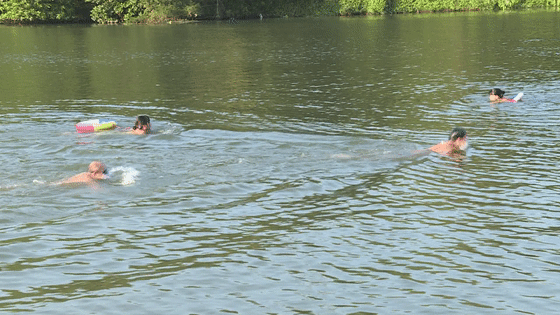 这位大叔带着简单的游泳装备就下河“野泳”,要知道野外水下环境复杂,安全隐患重重,泳技再好也请不要“野泳”。
