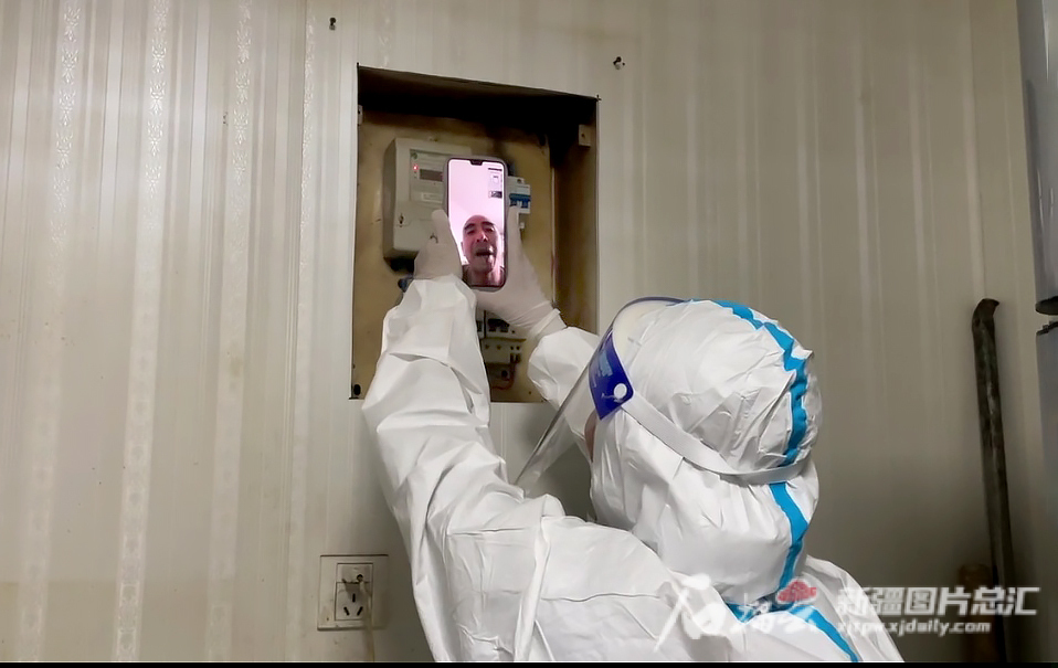10月24日20时,乌鲁木齐经济技术开发区(头屯河区)百园社区干部秦昕瑶第二次帮助辖区居民马连杰确认其饭店的电源是否正常,冰柜工作是否正常。通讯员 马雪洁摄