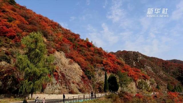 金秋十月,位于河南济源的王屋山世界地质公园漫山红叶如霞似火。