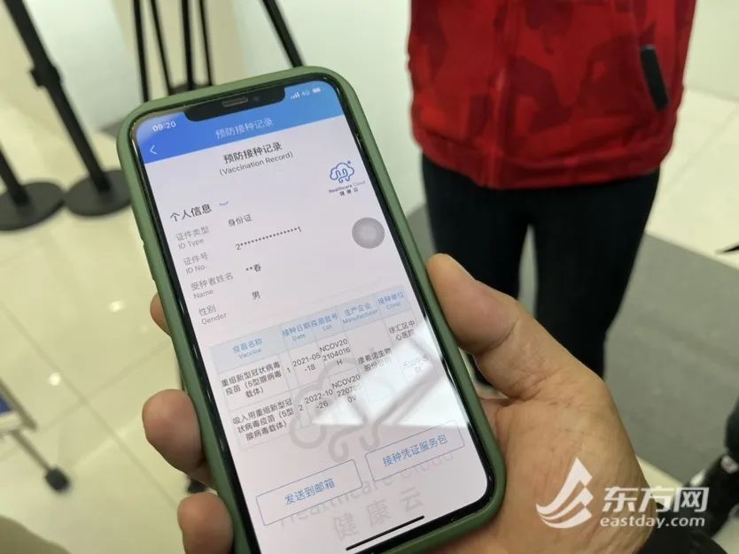 市民李先生此前接种的是康希诺一针剂的新冠疫苗,今天也选择了吸入式疫苗作为加强针。在接种完成后,他打开手机,已经可以看到自己接种吸入式疫苗的记录。
