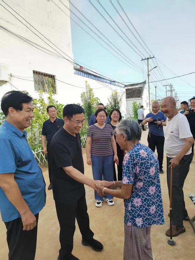 浚县县委书记王海涛(左二)在浚县白寺镇中岗村调研红色1+1“双联”工作法推行情况