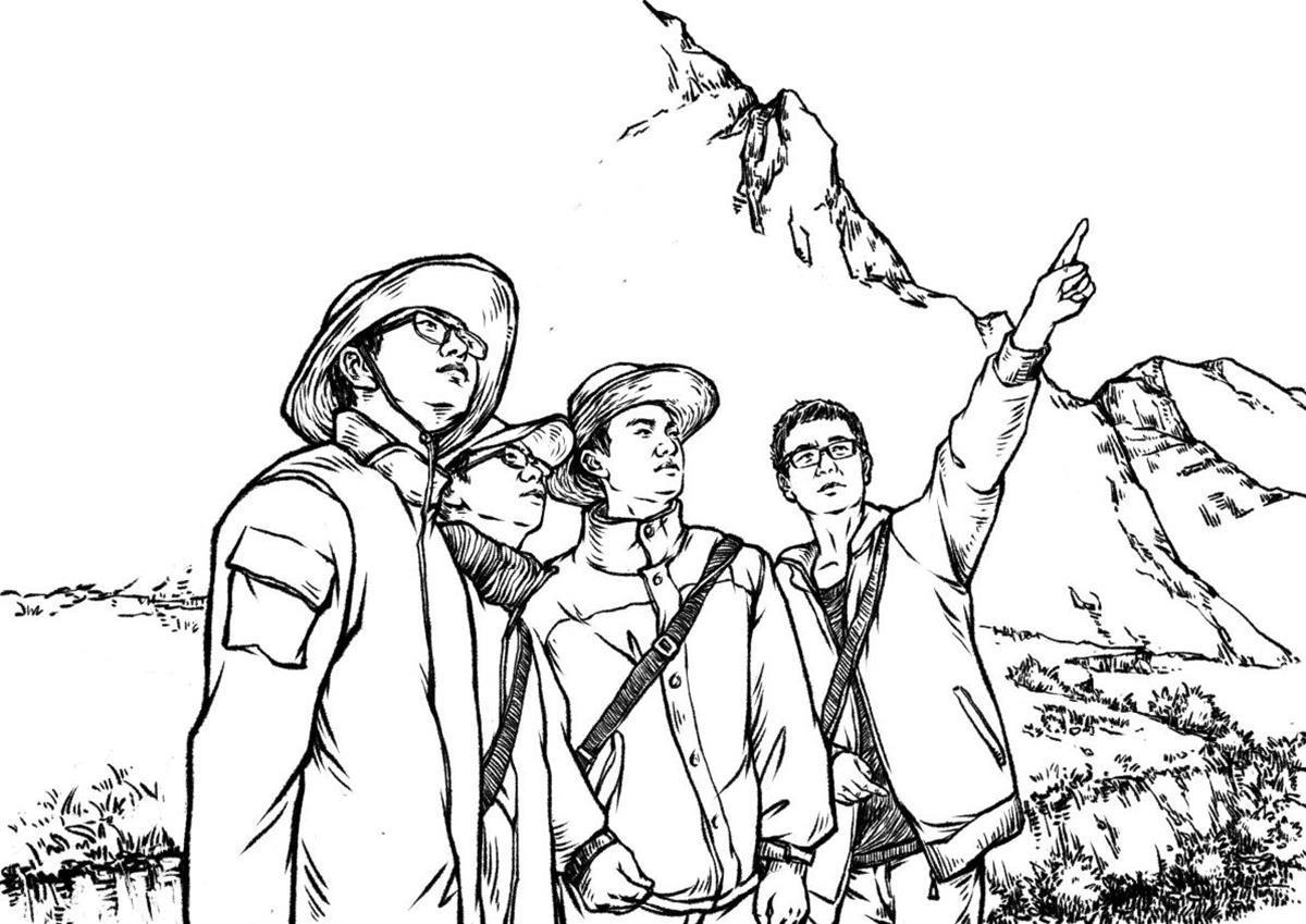 绘本《山河作证》的过程,并非一帆风顺。去年12月,针对20多张创作草图,陈华文并不满意,地质人的精气神在画稿中,没有达到预想的表现效果,他甚至一度想放弃创作。但是一想到师生们在崇山峻岭跋涉的身影和无畏的攀登精神,他又鼓起了创作的勇气。每一幅画稿,从草图酝酿到最初定稿,都反反复复地修改,有的画稿修改多达十余次。
