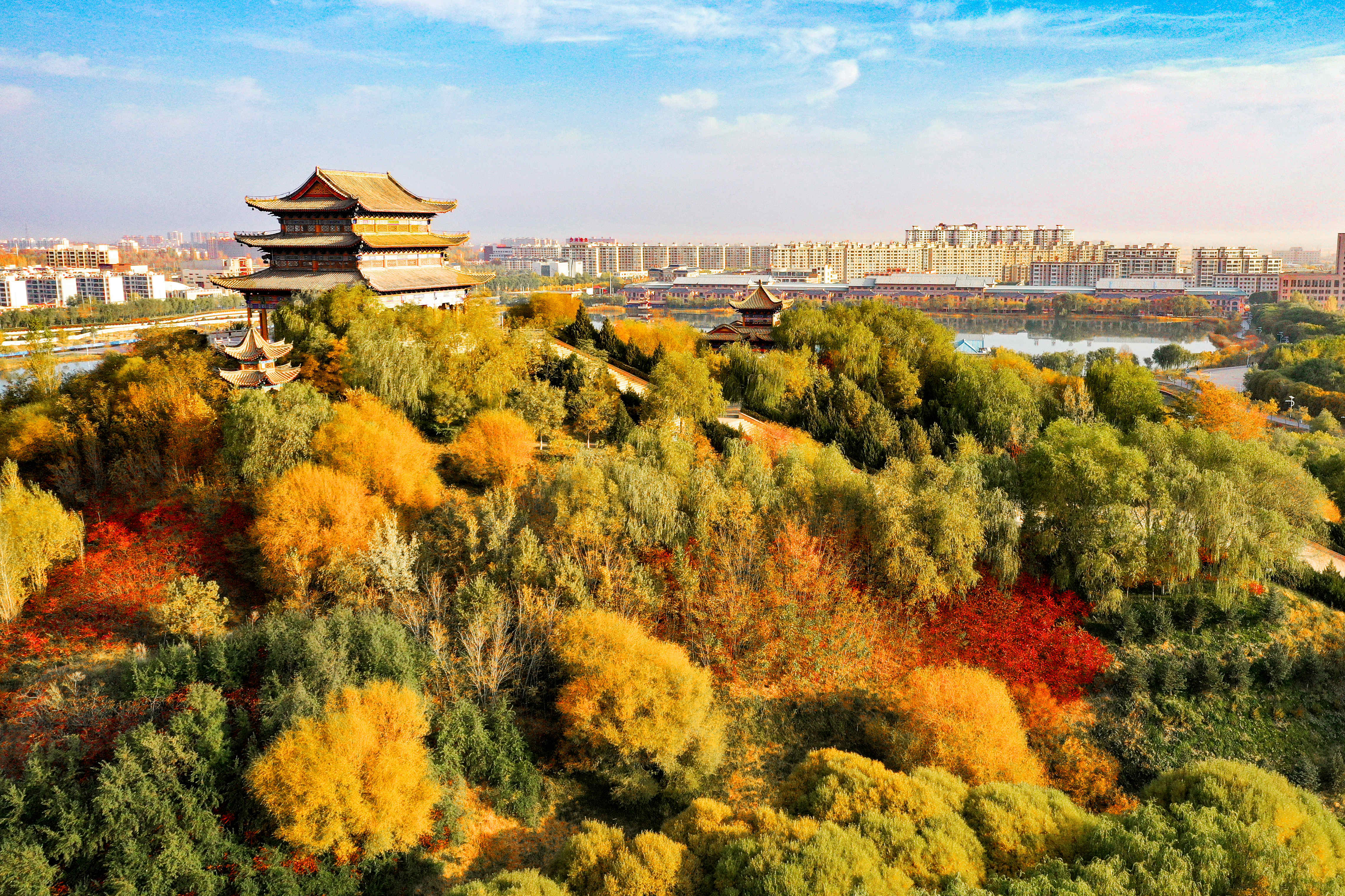 深秋时节,甘肃张掖临泽县流沙河景区层林尽染,秋韵正浓。处处或黄或红或绿,为景区披上五彩外衣,构成一幅绝美秋色图。(张希清)