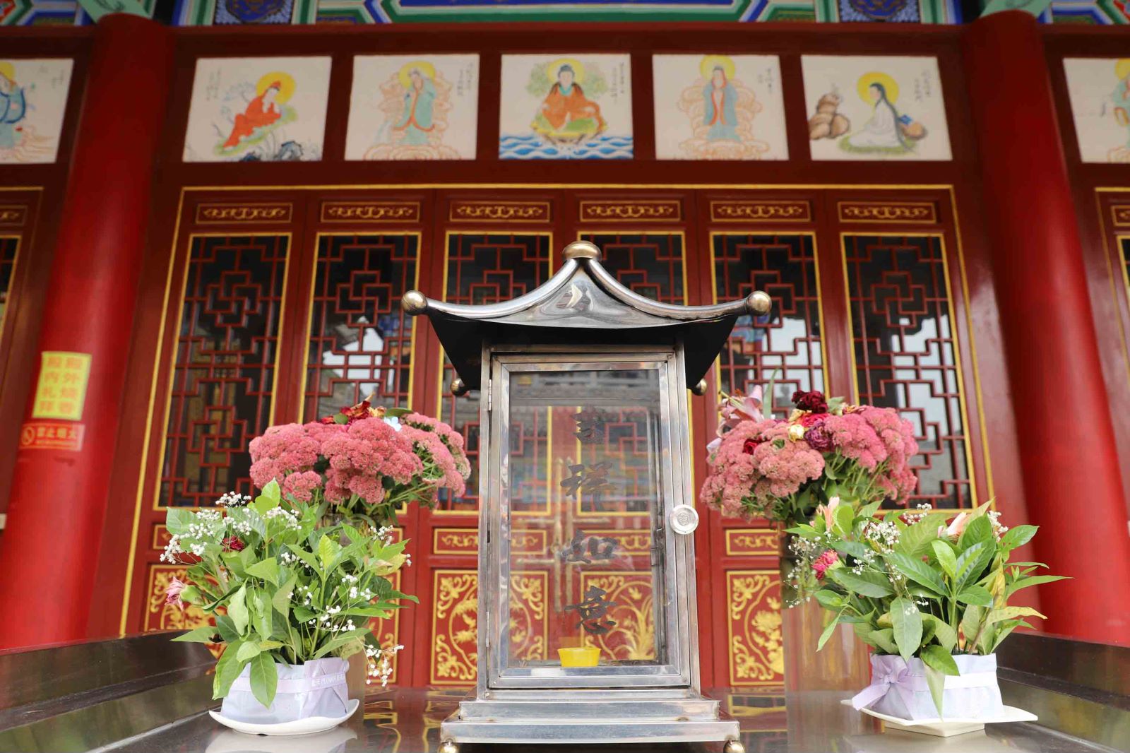 我想打听此寺庙的历史,但未见有僧人,只有一位女居士,她合掌施礼后介绍说此寺大有来历,原建于唐朝,玄奘取经曾路过此地,后又多次修建(果然是六耳猕猴的地盘啊),因为是木结构,先后历经两次火灾烧毁,现在看到的是2016年新修建的砖木结构,难怪这么新。