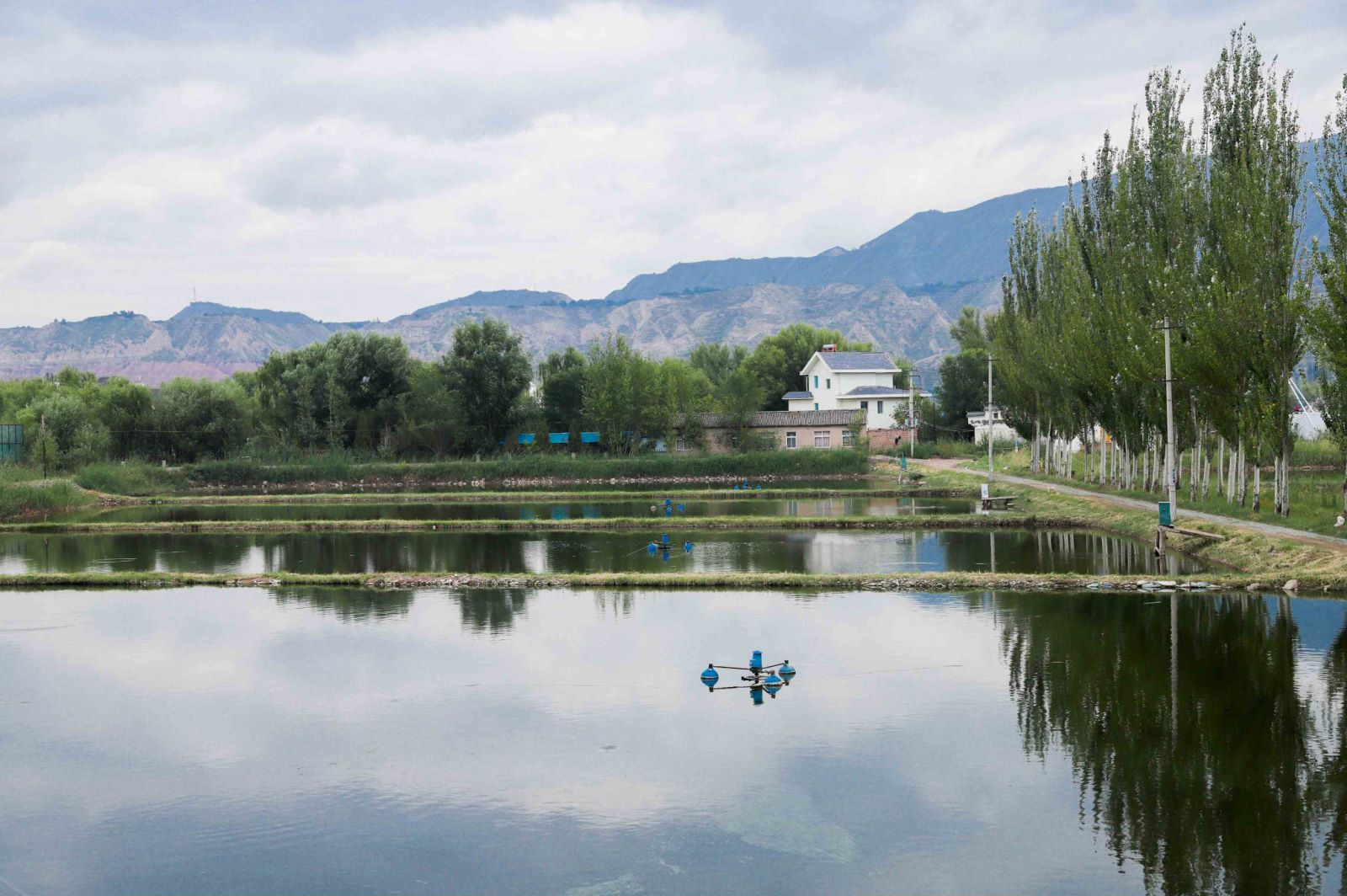 可惜,今天我能看到的只有一个半黄河三峡:一个盐锅峡,半个刘家峡,因为今天的目的地是永靖县,位于刘家峡的下游。尽管这样,盐锅峡这段依然带给我许多惊喜,双向八车道的柏油路,车少又干净,让我这小单车享受到极大的自由空间。一段绿化极好的湿地,周围鱼塘遍地、飞鸟起落,柳树轻拂,疑似来到江南水乡;最美的是,这里居然有一段依山架水的水上公路,宽阔的水面映着对面山岭的轮廓,安静淡然,如一幅柔美的山水画,所有的美景一个人独享,大概,这就是独行的乐趣吧。