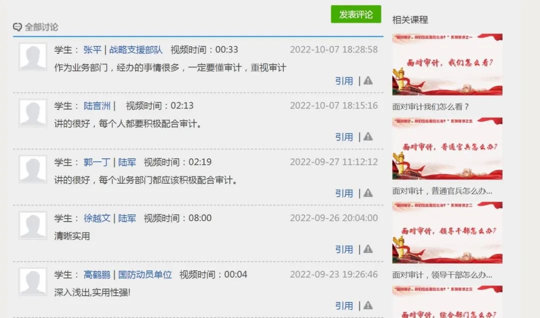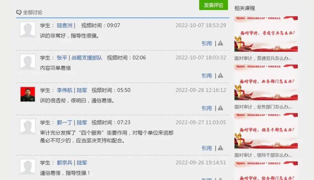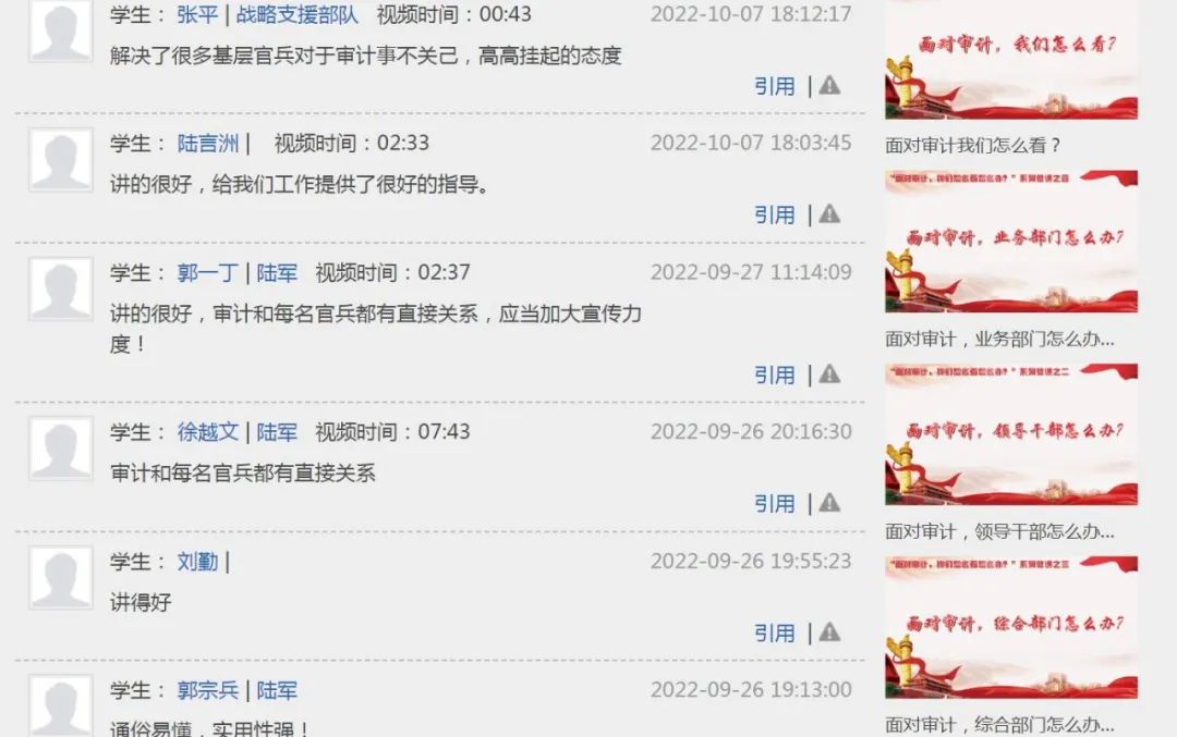 空军封学良说:系列微课很好,对我们深入正确理解、积极支持配合审计工作有重要指导意义。