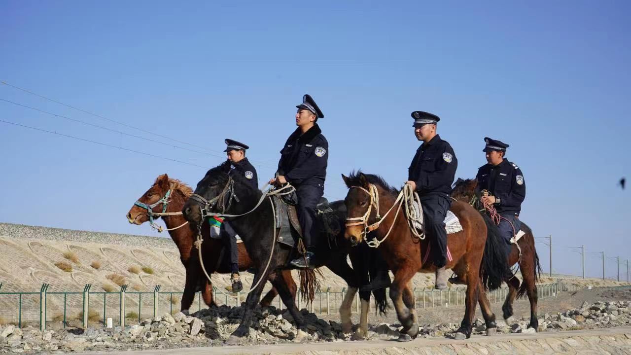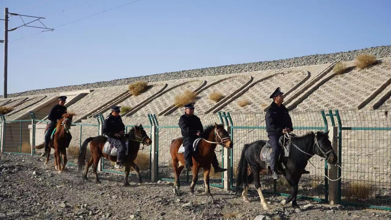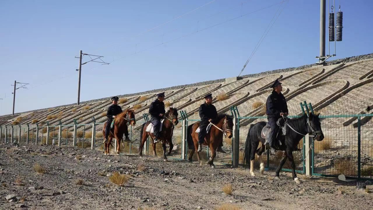 阿克塞县境内铁路沿线巡查地理条件复杂,夏季松软的沙窝子,冬季较厚的积雪,造成有些路段车辆无法通行,复杂的地理、气候条件给阿克塞铁路护路联防巡查大队线路巡查工作带来了较大的困难。为实现“线路治安持续稳定 确保铁路生产运输安全”的工作目标,阿克塞县巡查大队结合实际情况,创新工作方法,利用护路队员自家马匹,为阿克塞护路联防巡查大队创建出了一支作风优良的“马背上的护路队”。队伍的建立,为辖区线路巡查线路工作带来了诸多便利,较大提升了对辖区复杂区段的巡线覆盖率,进一步确保了线路治安秩序有序可控,为铁路生产运输的安全保驾护航。