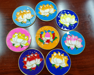 色彩鲜艳的荷花作品摆放在一起,十分惹眼,大家互相欣赏,成就感满满。通过此次活动,让居民朋友不仅体验到了手工制作的乐趣,同时感受到了传统文化的独特魅力与韵味,对掐丝珐琅这项工艺产生了浓厚的兴趣。